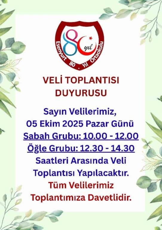 Sayın Velilerimiz 5 Ekim Pazar Günü okulumuzda veli toplantısı...